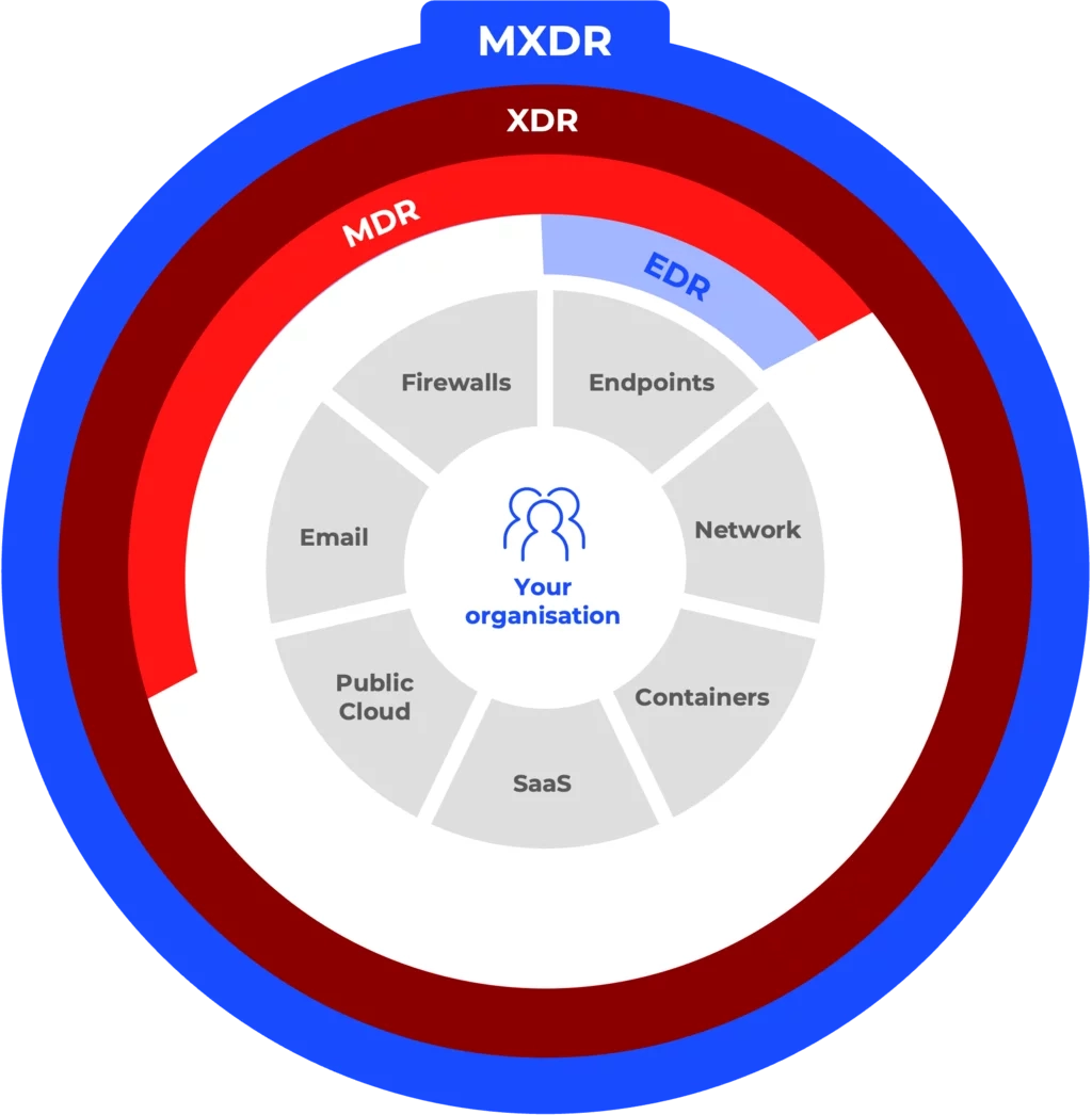 MXDR: A managed service specifically tailored for extended detection and response, emphasising proactive monitoring and rapid incident response.